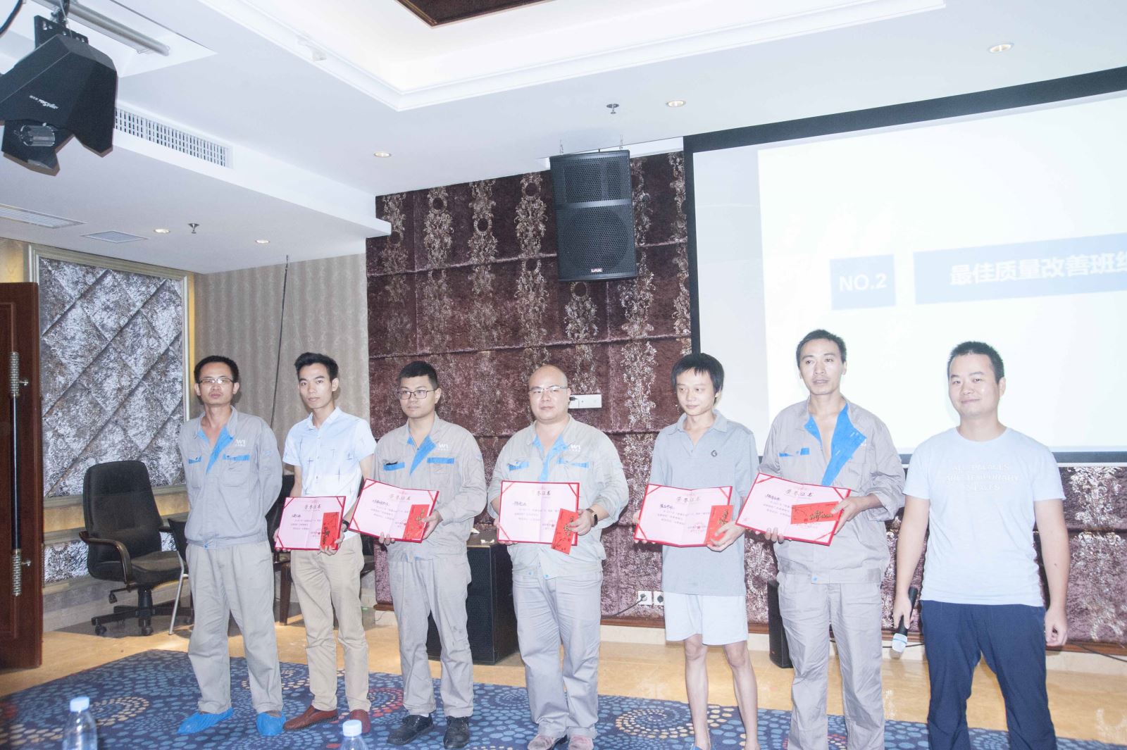 本次質(zhì)量改善月歷時6、7、8三個月,根據(jù)各產(chǎn)線班組的實(shí)際質(zhì)量改善情況,由各產(chǎn)線負(fù)責(zé)人及產(chǎn)線班長組成評委會,采用現(xiàn)場演講、現(xiàn)場打分、現(xiàn)場統(tǒng)計評選、現(xiàn)場表彰的方式,共評選出“質(zhì)量先進(jìn)個人”8人、“最佳質(zhì)量改善班組”5個班組。