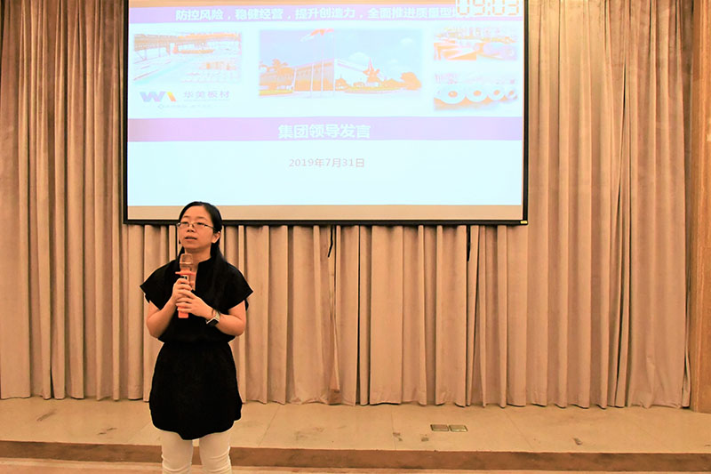 仇總首先總結(jié)了公司上半年經(jīng)營(yíng)管理過程中的亮點(diǎn)與不足、布局規(guī)劃了下半年各中心/部門聚焦的重點(diǎn)工作,希望華美板材全體同仁發(fā)揮團(tuán)隊(duì)作戰(zhàn)模式,攻山頭、打糧食,始終貫徹以客戶為中心、為客戶創(chuàng)造價(jià)值的發(fā)展理念,克服懈怠、奮斗不停,基于“質(zhì)量型增長(zhǎng)”努力完成公司2019年的業(yè)績(jī)目標(biāo)!