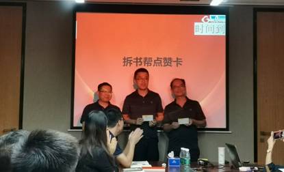 由所有參與者共同投票選取了本場(chǎng)拆書(shū)活動(dòng)中最受歡迎“拆書(shū)家”,他們分別是銷售二部陳偉聰、國(guó)際貿(mào)易部刁學(xué)千,華美板材副